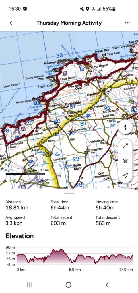 We walked from the cottage through fields to Abereiddy Bay and then took the coast path west.